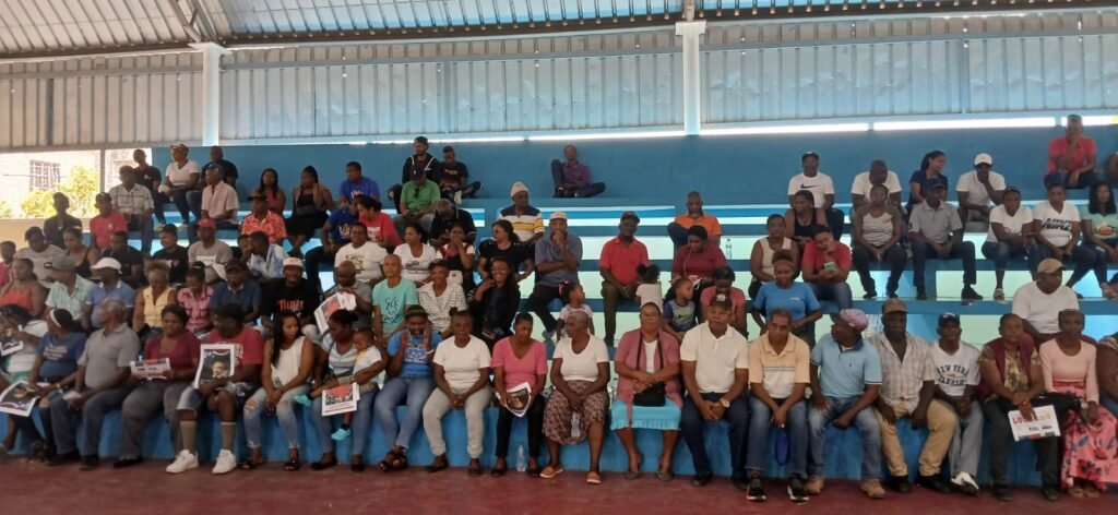 San Cristóbal, R.D. – La Unión de Organizaciones Sociales de Semana Santa y la Asociación de Parceleros Fabián Rodríguez sostuvieron un encuentro el pasado sábado en el polideportivo de la comunidad, donde abordaron dos temas fundamentales: la exoneración del pago de energía eléctrica y la devolución de 4,000 tareas de tierra que, según denuncian, están en manos de la empresa Bicini de manera ilegal.
