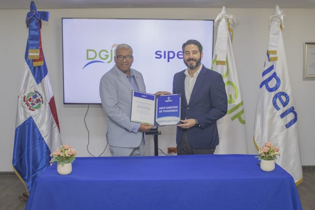 Santo Domingo, D.N. – La Dirección General de Jubilaciones y Pensiones a Cargo del Estado (DGJP) fue reconocida por la Superintendencia de Pensiones (SIPEN) con el Sello “Aquí Sabemos de Pensiones”, tras haber culminado con éxito un proceso de formación que alcanzó a la mayoría de su personal. Este reconocimiento valida el compromiso institucional con la educación previsional y el fortalecimiento del sistema de pensiones en el país.