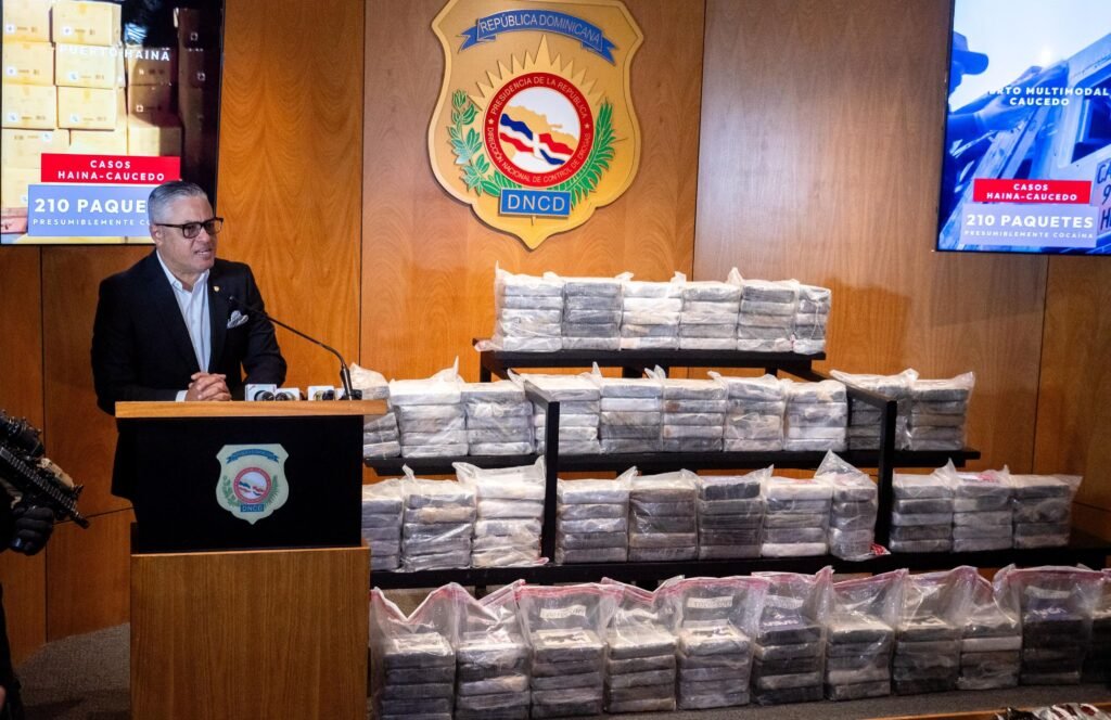 Santo Domingo.- Dentro de la ampliación de las operaciones conjuntas para enfrentar el narcotráfico y la criminalidad organizada transnacional, agentes de la Dirección Nacional de Control de Drogas (DNCD) y miembros de la Dirección de Aduanas (DGA), coordinados por el Ministerio Público y apoyados por agencias de Inteligencia del Estado, confiscaron 210 paquetes presumiblemente cocaína, en medio de dos intervenciones simultáneas, realizadas en los puertos de Haina Oriental y Multimodal Caucedo.